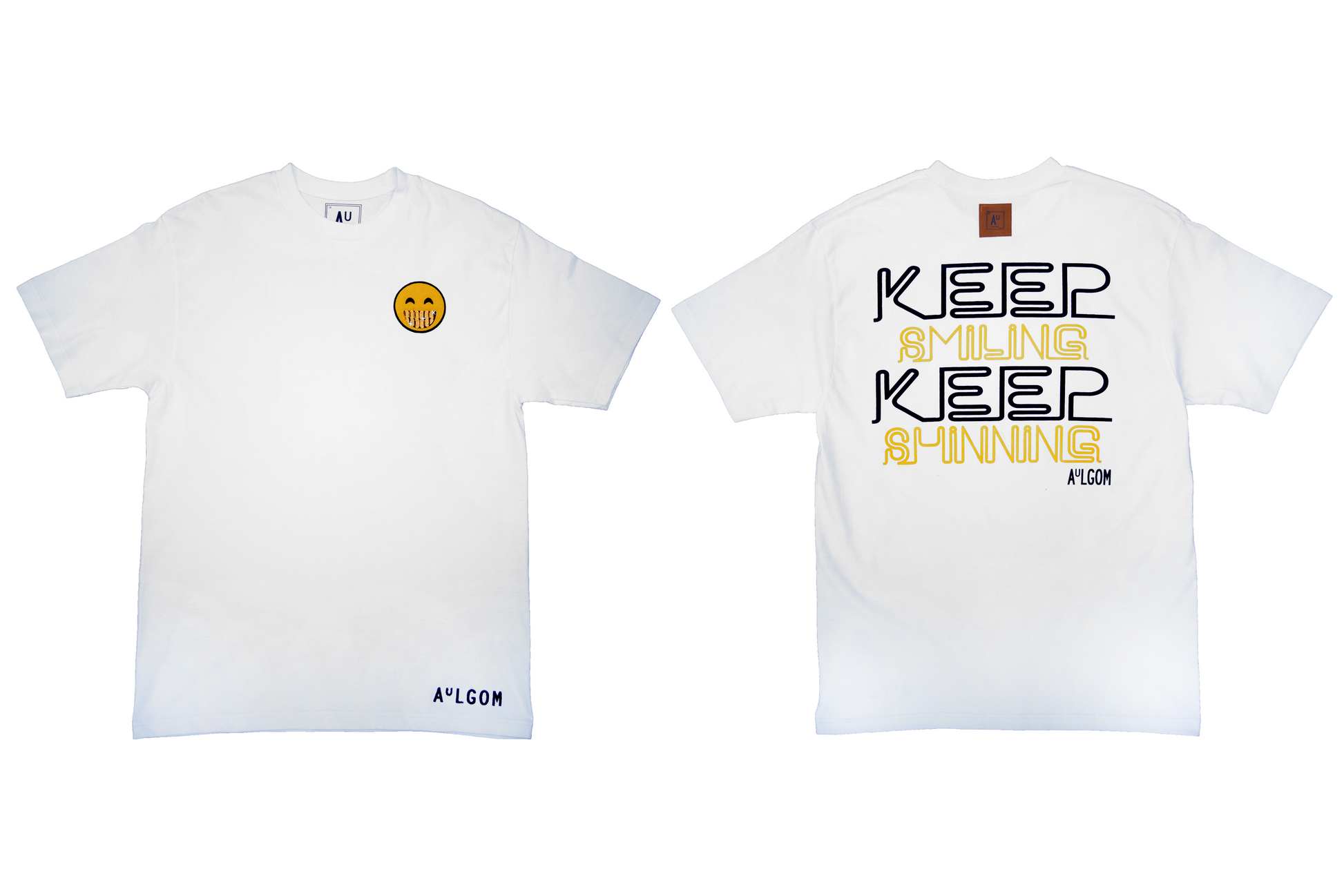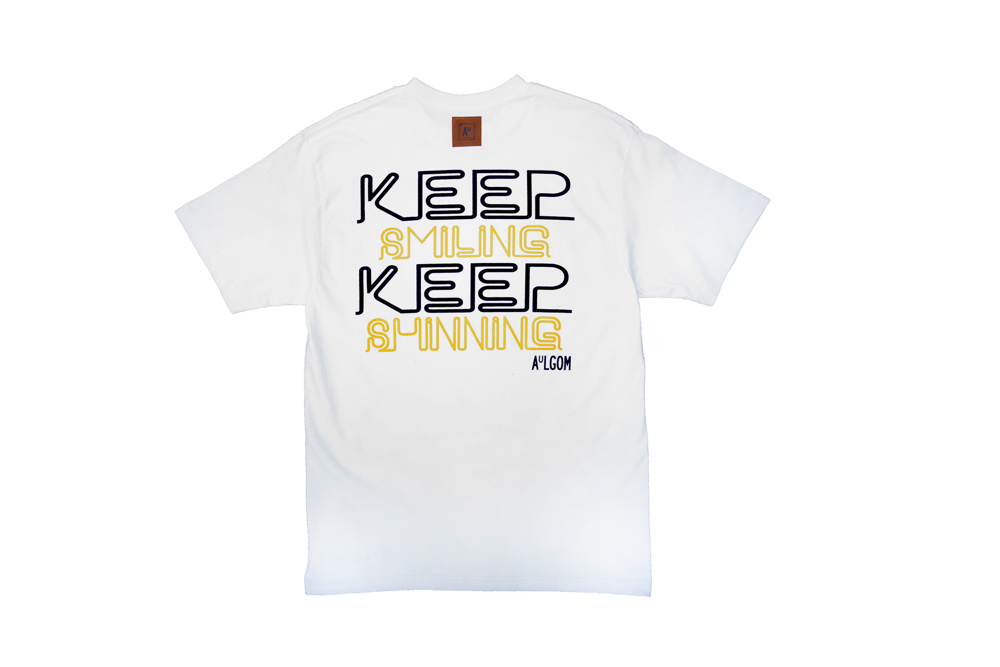 This Keep Smiling T-shirt features a charming embroidered emoji logo on the front, adding a playful yet refined touch. The back displays the inspiring message "Keep Smiling Keep Shining," encouraging positivity throughout your day. Crafted for comfort and style, this tee is perfect for those who want to express optimism with subtle sophistication.